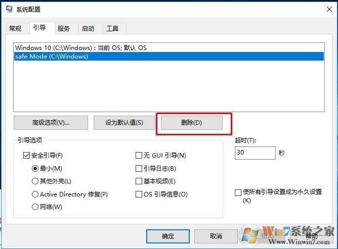 2、打開系統(tǒng)配置程序之后,我們點擊到“引導”項,這時我們可以看到有多個引導,保留Windows10,然后把不需要的刪除;