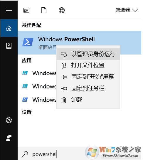 1、首先在任務(wù)欄搜索框輸入powershell,右鍵單擊搜索出的“powershell”,然后“以管理員方式運(yùn)行”。