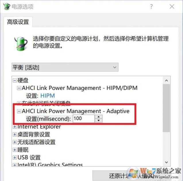 而“AHCI Link Power Management-Adaptive”,也就是低功耗模式自適應(yīng),可以設(shè)置固態(tài)盤空閑多長時(shí)間后進(jìn)入休眠狀態(tài),如果設(shè)置的短一些如改為50,可以降低功耗,設(shè)置的長一些如200或更高,則可以讓硬件減少休眠,提升性能。