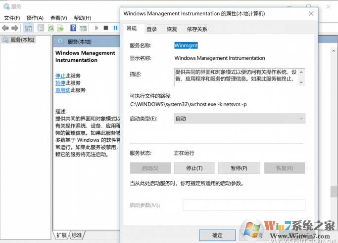 3、進(jìn)入“服務(wù)”管理界面,找到“Windows Management Instrumentation”這個(gè)選項(xiàng),看看它的啟動(dòng)方式是不是“自動(dòng)”,如果是其他形式的話,改成“自動(dòng)”后重啟電腦就行了。