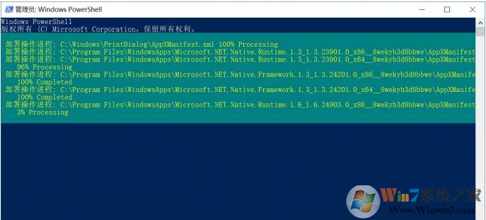 之后所有的UWP應(yīng)用都會(huì)重置(相當(dāng)于重新安裝),這樣操作之后我們?cè)俅蜷_圖片就不會(huì)出現(xiàn)文件系統(tǒng)錯(cuò)誤了,大家可以學(xué)習(xí)一下以上修復(fù)知識(shí)。
