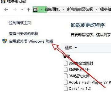 3、點擊左側(cè)邊欄的“啟用或關(guān)閉Windows功能”,如圖: