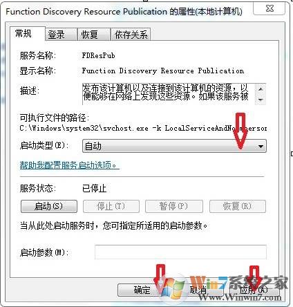 找到名稱為:Function DiscoveryResource Publication 這一服務(wù)項目上雙擊左鍵,彈出如下對話框: