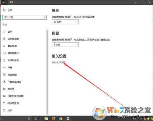 4、在此處即可設(shè)置自動關(guān)閉屏幕和自動開啟睡眠的時間,如果不需要,請點擊其他電源設(shè)置