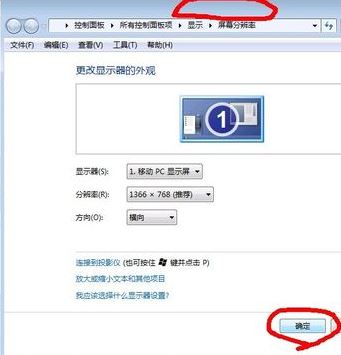 4、回到“屏幕分辨率”頁(yè)面中,同樣點(diǎn)擊確定,如圖: