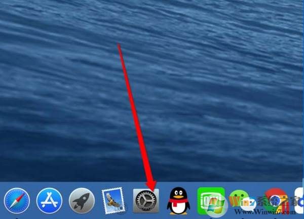 1、首先我們?cè)谙到y(tǒng)下方Dock面板上找到設(shè)置按鈕,單擊此按鈕進(jìn)入到設(shè)置界面