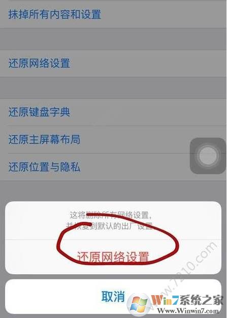 5、再輸入你的手機(jī)密碼,確定還原網(wǎng)絡(luò)設(shè)置即可解決喲。