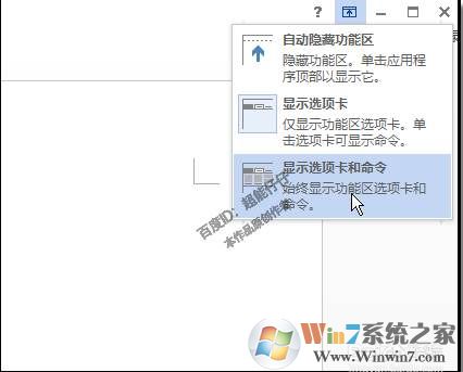 4、下方彈出三項(xiàng)內(nèi)容;單擊第三項(xiàng):顯示選項(xiàng)卡和命令