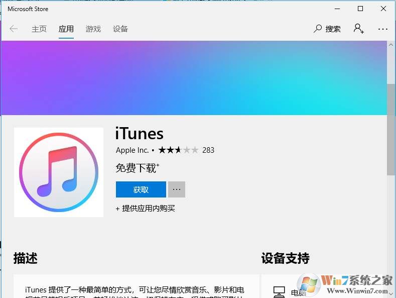 1、在Win10中我們可以從應(yīng)用商店下載itunes比較方便;