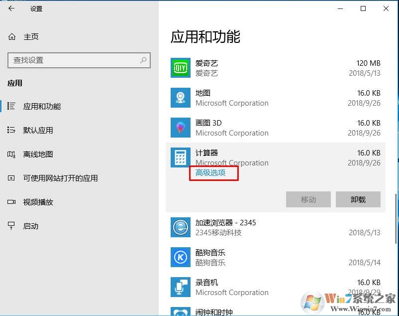 3、在應(yīng)用列表中找到你要修復(fù)的應(yīng)用,然后點(diǎn)擊,再點(diǎn)擊高級選項(xiàng);
