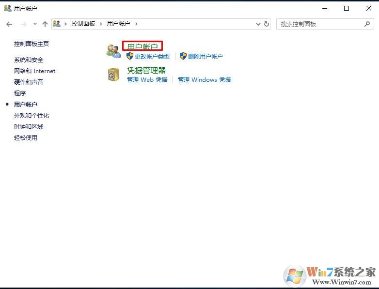 3、進(jìn)入下一個(gè)界面,再點(diǎn)擊 用戶帳戶,如下圖;