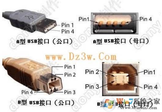 USB接口定義及USB接口外形圖USB 引腳定義: