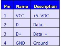 紅(Vcc)),白(D-),綠(D+),黑(GND)