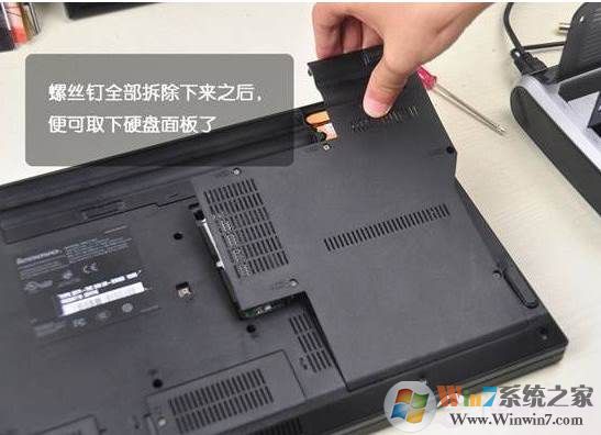 使用十字螺絲刀把筆記本硬盤蓋子的螺絲您的擰掉。