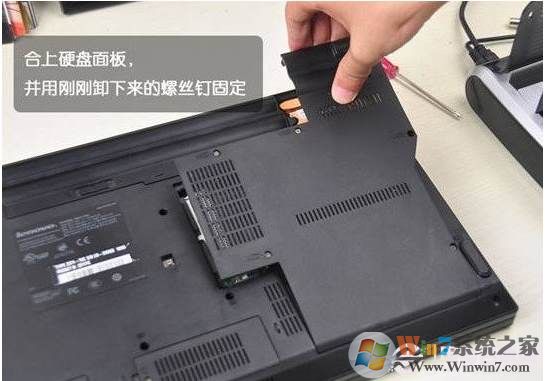 4、這時我們完成了固態(tài)硬盤的更換,然后蓋安裝回去。