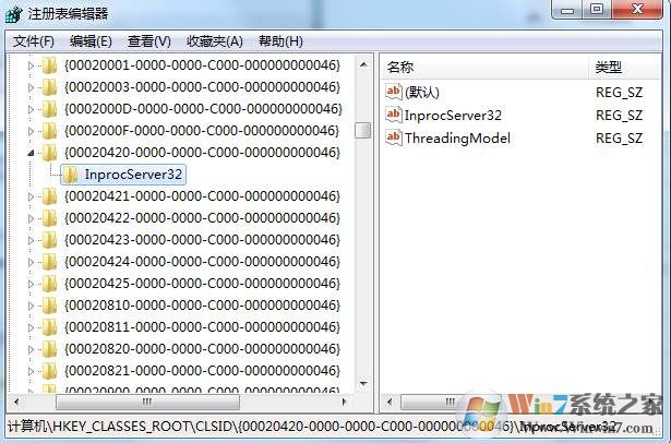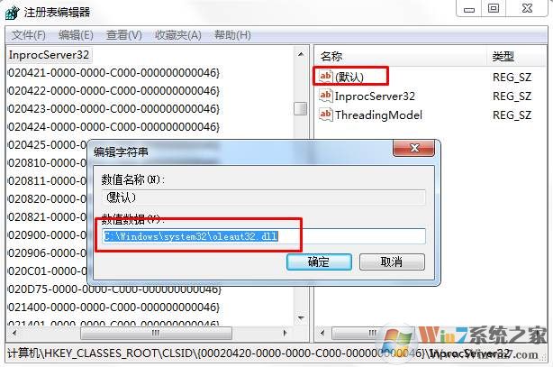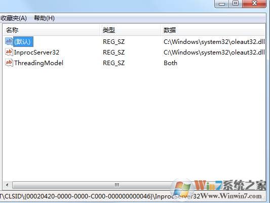 3.如果 “InprocServer32”值不是這個也修改一下修改后如下:
