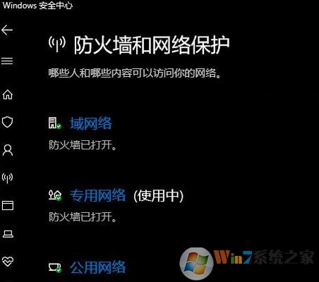 方法一:在“Windows安全中心”打開Windows Defender防火墻,打開“Windows安全中心”,進(jìn)入“防火墻和網(wǎng)絡(luò)保護(hù)”界面。如圖: