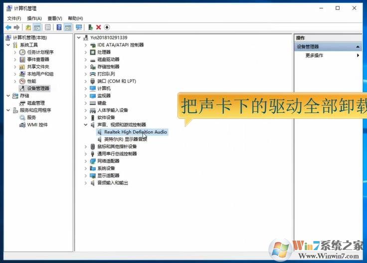 6、把“聲音、視頻和游戲控制器”,列表下的驅(qū)動(dòng)全部卸載;(右鍵點(diǎn)擊卸載)