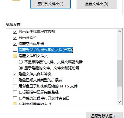 1、首先在“文件夾選項(xiàng)”窗口的“查看”選項(xiàng)卡下,從“高級(jí)設(shè)置”列表中,取消選擇“隱藏受保護(hù)的操作系統(tǒng)文件”;
