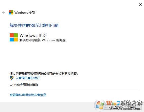 Win10無法自動更新方法一:使用Windows更新疑難解答程序排查