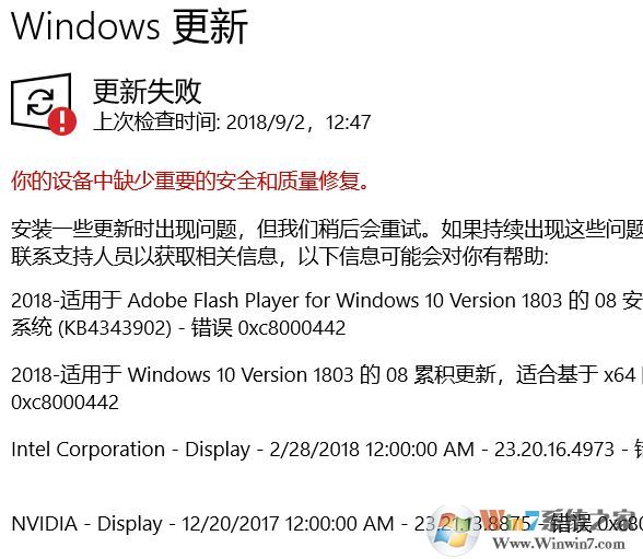 win10更新失敗:你的設(shè)備中缺少重要的安全和質(zhì)量修復(fù) 的解決方法