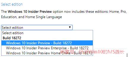 - Select edition 選擇需要下載的Win10預(yù)覽版本;