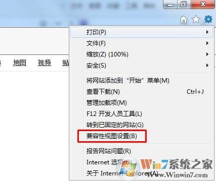 1、打開IE,然后點擊右上角設(shè)置-兼容性視圖設(shè)置