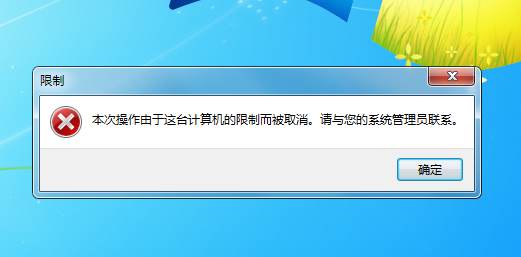 禁止該程序運行后,我們再啟動QQ時,會出現(xiàn) 本次操作由于這臺計算機的限制而被取消的提示,請與你的管理員聯(lián)系。