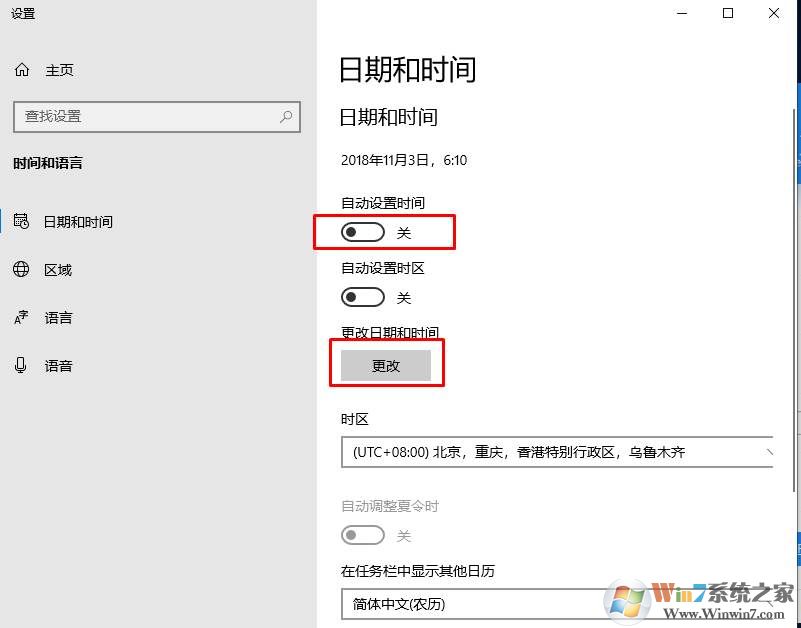 2、這時我們可以看到自動設(shè)置時間是打開的,我們先把它關(guān)閉,然后就可以點下方的更改按鈕了;