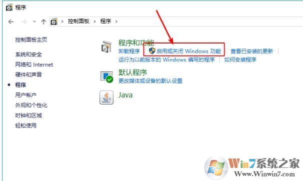 3、接下來再點(diǎn)擊啟用或關(guān)閉Windows功能選項(xiàng),