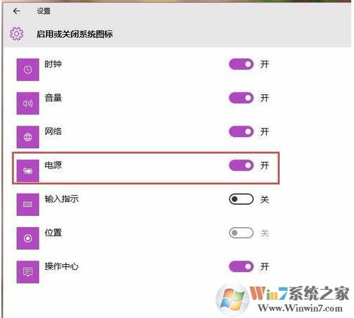 4、接下來,在打開的系統(tǒng)圖標(biāo)頁面中,我們先嘗試打開電腦中的電池顯示圖標(biāo),如果可以點(diǎn)擊開啟該圖標(biāo)的話,點(diǎn)擊開啟即可。