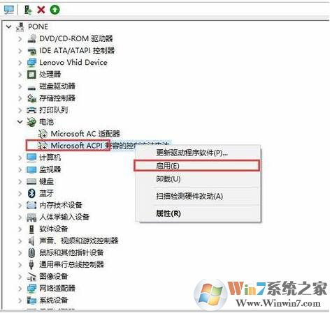 4、禁用這兩個子項(xiàng)之后,我們需要再次點(diǎn)擊這兩個子項(xiàng),在彈出的右鍵菜單中選擇“啟用”按鈕,啟用這兩個設(shè)備。