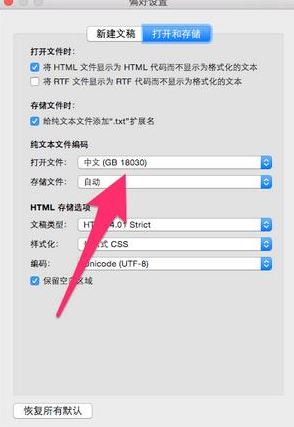 打開「文本編輯.app」,點擊屏幕左上角菜單欄的「文本編輯」>「偏好設置…」>「打開和存儲」。選擇打開純文本文件的編碼為「中文 GBxxxx」即可。