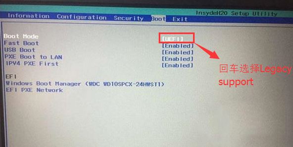 4、切換到Boot,把Boot Mode從UEFI改成Legacy Support,改傳統(tǒng)引導(dǎo),如下圖所示;
