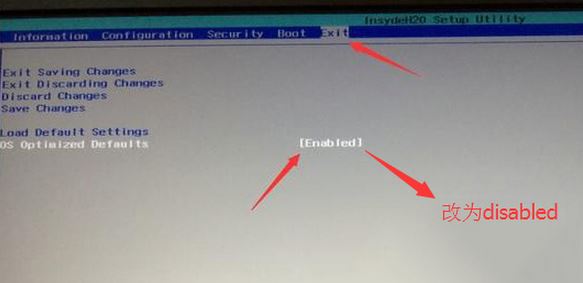 2、轉(zhuǎn)到Exit,把OS Optimized Defaults設(shè)置為Disabled或Other OS,如下圖所示;
