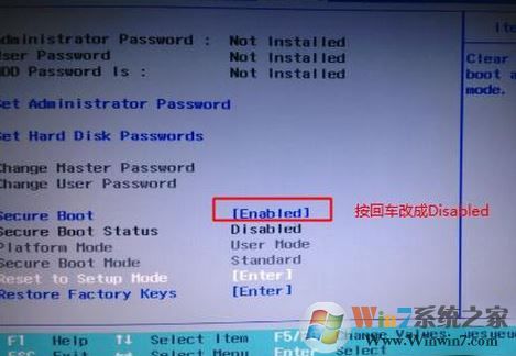1、開機(jī)一直按F2或(FN+F2)進(jìn)入BIOS,按→方向鍵切換到Security,選擇Secure Boot回車設(shè)置成Disabled,關(guān)閉安全啟動(dòng),否則安裝win7會失敗,如下圖所示;