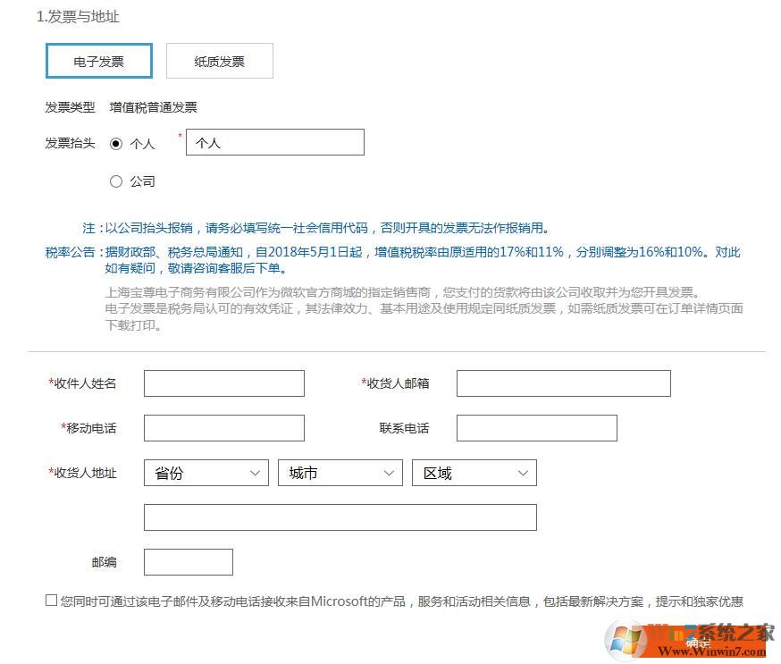 登錄之后就是填寫發(fā)票寄送地址等信息