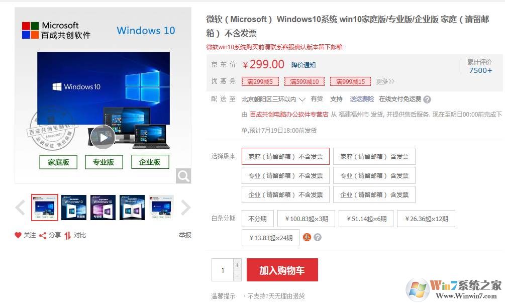 一般來說購買Win10正版,專業(yè)版和家庭版是最多的。大家可以選擇在官方購買(含發(fā)票,貴很多),還有京東也可以購買(不含發(fā)票,便宜很多)