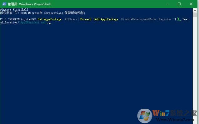 Get-AppxPackage -AllUsers| Foreach {Add-AppxPackage -DisableDevelopmentMode -Register "$($_.InstallLocation)\AppXManifest.xml"}