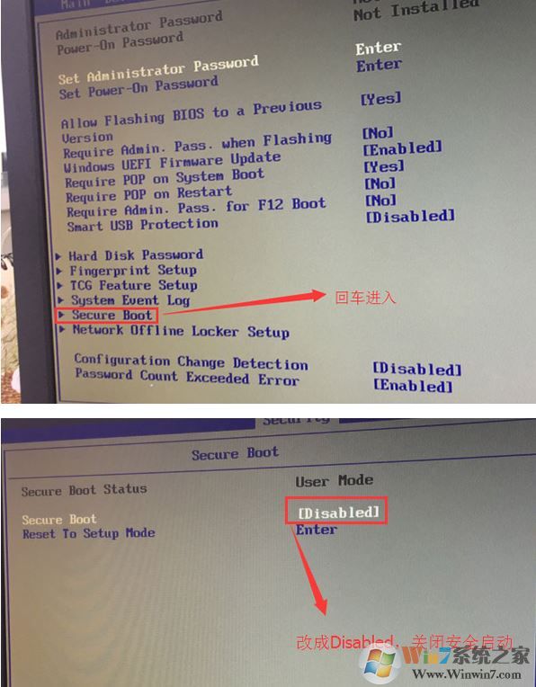 1、開機一直按F2或(FN+F2)進入BIOS,按→方向鍵切換到Security,選擇Secure Boot回車設(shè)置成Disabled;