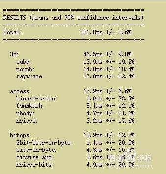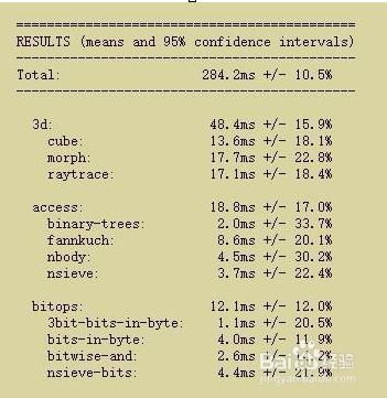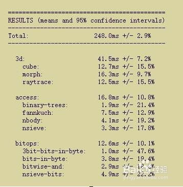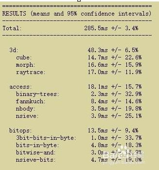 SunSpider JavaScript評(píng)分:各項(xiàng)數(shù)值最小越好(單位:毫秒)