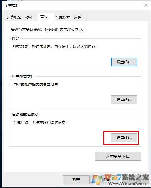 3、點擊啟動和故障恢復的設(shè)置按鈕;cncxm.com 整理