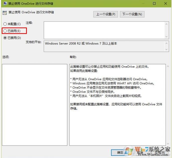 3、我們可以看到一共有5個(gè)選項(xiàng),我們把這5個(gè)選項(xiàng)都設(shè)置為。雙擊這些選項(xiàng)并將它們?cè)O(shè)置為“已啟用”狀態(tài)。啟用之后,onedrive就不會(huì)再儲(chǔ)存文件了。