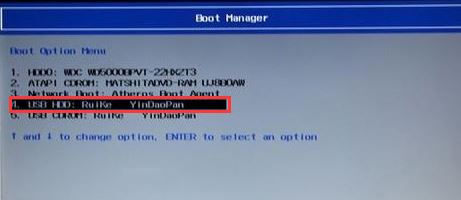 5、插入U盤啟動盤,重啟時不停的按下f12,打開Boot Manager,選擇USB HDD回車從U盤啟動,如下圖所示;