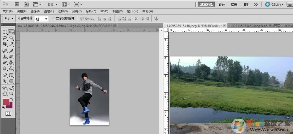 1、在背景圖層中我們無法操作,所以我們先把這兩張圖片合在一起,如圖:
