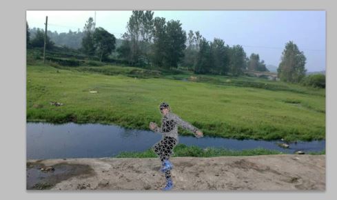 4、摳出來的人物上出現(xiàn)網(wǎng)格線之后我們就可以進行變形!