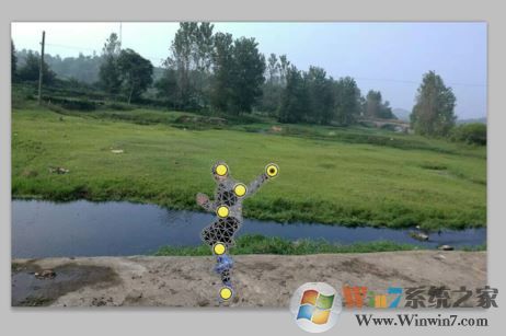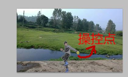 5、我們點擊人手時,發(fā)現(xiàn)有一個點,這就是我們的操控點,當我們將手向上移動時,我們發(fā)現(xiàn)我們的整個圖像都是整體向上移動的,那是因為我們?nèi)鄙俨倏攸c,多幾個固定點,我們再試試,就行了。
