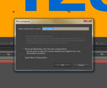 2、選擇文字成Ctrl+shift+c鍵將文字層打成預(yù)合成(這樣做的目的是為了方便使用筆刷工具)。