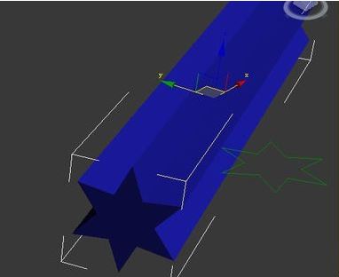5、單擊【圖形】按鈕,頂視圖繪制一條直線和一個星形圖形,這里把星形圖形作為掃描的截面,如圖: