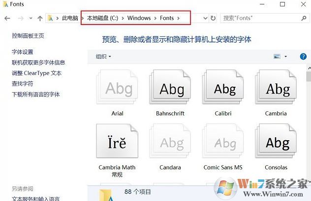 Win10字體文件夾路徑: